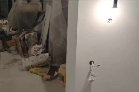 Выбрали Knauf MP 75 под шпаклевку. Она имеет гипсовую основу, Knauf MP 75 быстро застывает, что ускоряет сроки выполнения работ, имеет лучшее сцепление, по сравнению с известковыми и цементными смесями. Часть комнат шпаклевалась под покраску, часть под обои. Работы были выполнены за 1 неделю.